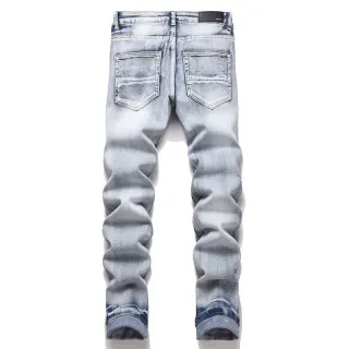 - Light-wash blue denim base (soft, vintage texture with dynamic fading)